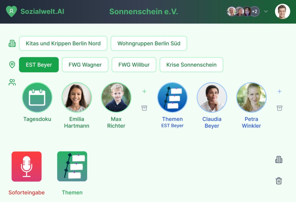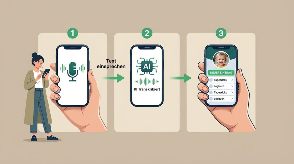 Einfach für mehrere Kinder einsprechen – KI glättet und verteilt auf die individuellen Dokus.