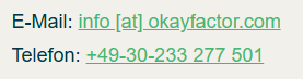 | Kommunikation Zusammenfassung 👥 Betroffene: Alle, die mit uns per Telefon, E-Mail oder Online-Formular kommunizieren 📓 Verarbeitete Daten: z. B. Telefonnummer, Name, E-Mail-Adresse, eingegebene Formulardaten. Mehr Details dazu finden Sie bei der jeweils eingesetzten Kontaktart 🤝 Zweck: Abwicklung der Kommunikation mit Kunden, Geschäftspartnern usw. 📅 Speicherdauer: Dauer des Geschäftsfalls und der gesetzlichen Vorschriften ⚖️ Rechtsgrundlagen: Art. 6 Abs. 1 lit. a DSGVO (Einwilligung), Art. 6 Abs. 1 lit. b DSGVO (Vertrag), Art. 6 Abs. 1 lit. f DSGVO (Berechtigte Interessen) |